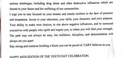 On the occasion of the 60th Youth Day Celebration, the Cameroonian Association for the Betterment