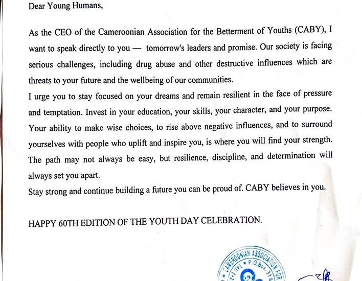 On the occasion of the 60th Youth Day Celebration, the Cameroonian Association for the Betterment of Youths (CABY) proudly shares a message of encouragement and hope to young people across the nation.